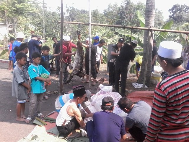 Menurut Ketua DKM M.Noit , hewan qurban yang dibagikan merupakan hasil gotong royong Warga RW.04 dan RW.05 Panggulan, terdiri dari 1 ekor Sapi dan 8 ekor kambing/domba, yang akan dibagikan kepada 220 orang kurang mampu.